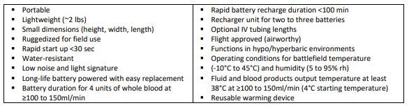 Desirable Characteristics of a Resuscitation Fluid Warming Device
