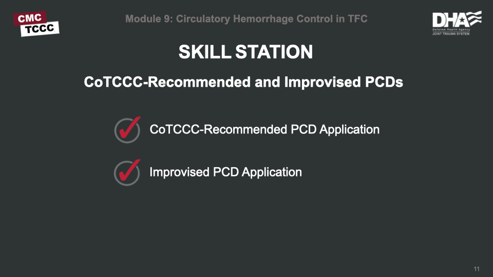 This video will go over the proper techniques for applying a CoTCCC-recommended PCD.