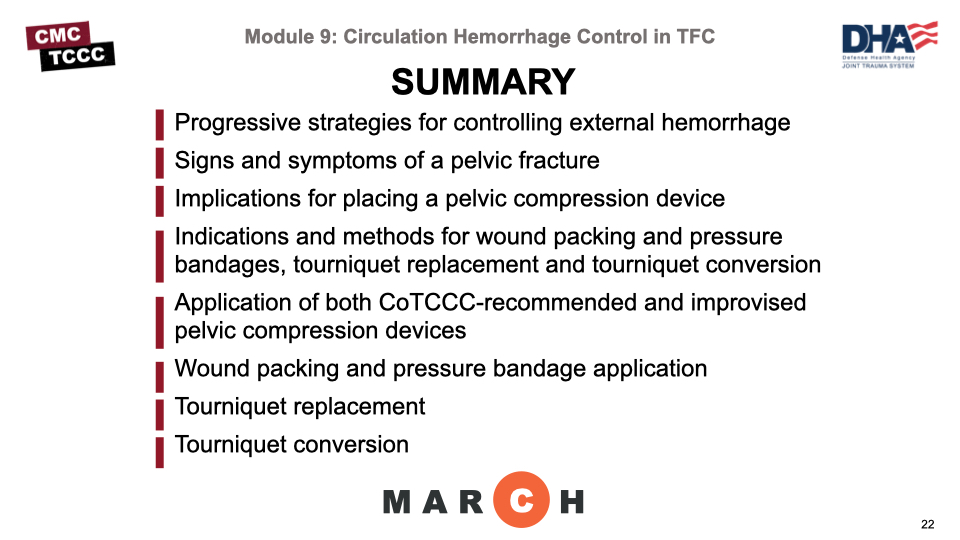 This video will recap some of the important concepts of hemorrhage control during circulation management in TFC.