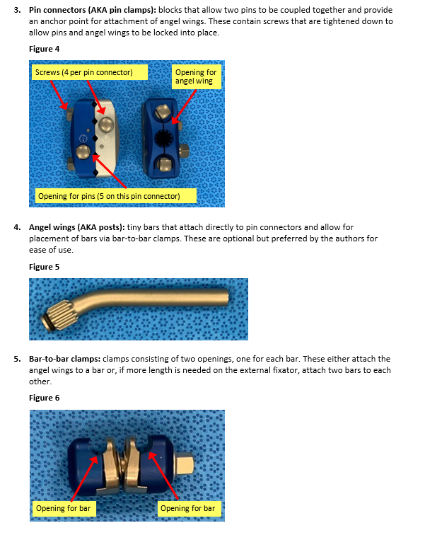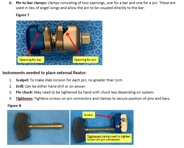 Step-By-Step Instructions (Associated photos for a knee spanning external fixator)