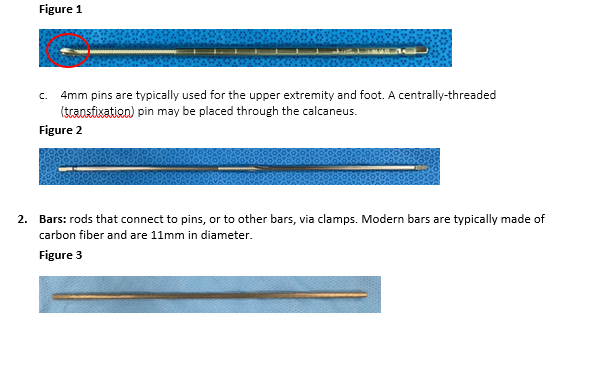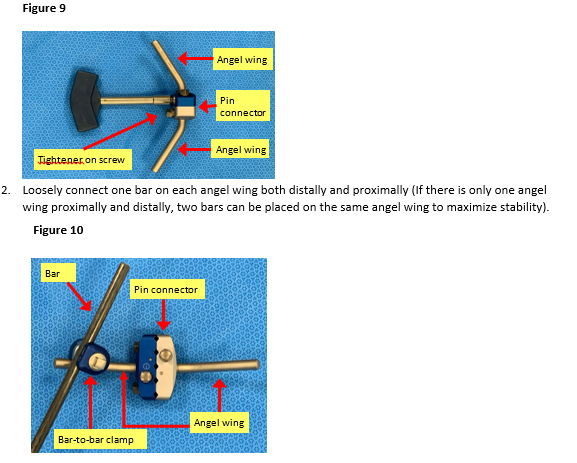 Minimum Supplies: 4 threaded pins, 2 pin connectors, 2 bars, 2 angel wings (4 suggested), 4 bar-to-bar clamps. Note: Fluoroscopy is beneficial but not essential.