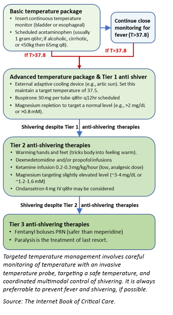 5. Recommendation for aggressive fever prevention (for neuroprotection) but no recommendation for traditional targeted temperature management in the post-cardiac arrest patient per the recent Targeted Temperature Management 2 trial.