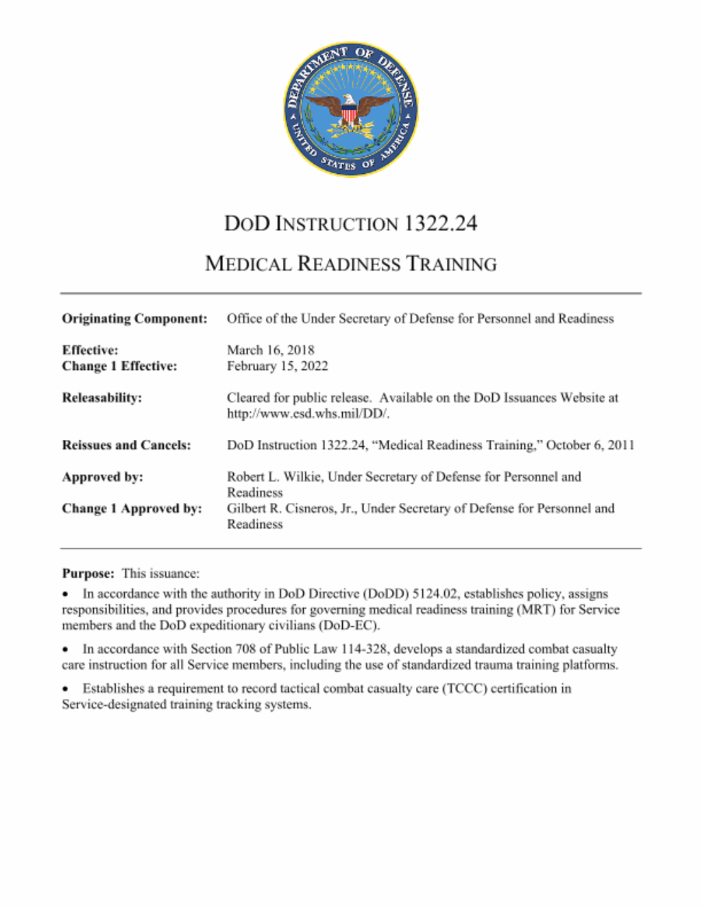 DoD Instruction 1322.24 Medical Readiness Training (MRT)