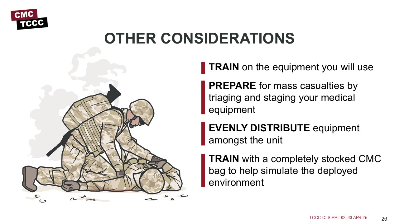 CMC personnel will have to prepare for the mission tasks in a combat environment every time. As medical personnel, you must adapt to current information about your upcoming deployment.