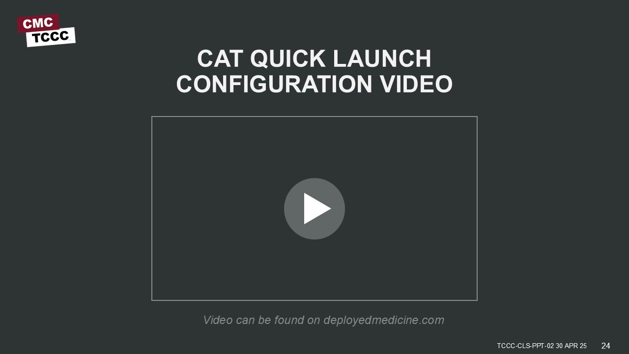For some items that don't require sterility or won't degrade with exposure to air, like tourniquets, it is appropriate to take them out of their packaging to save time when using them on the battlefield. With the CAT tourniquet, one of the more common limb tourniquets in the inventory, there is configuration option to optimize its one-handed use when supplying or resupplying your equipment kits. This video will review the steps you would take to configure a CAT tourniquet.