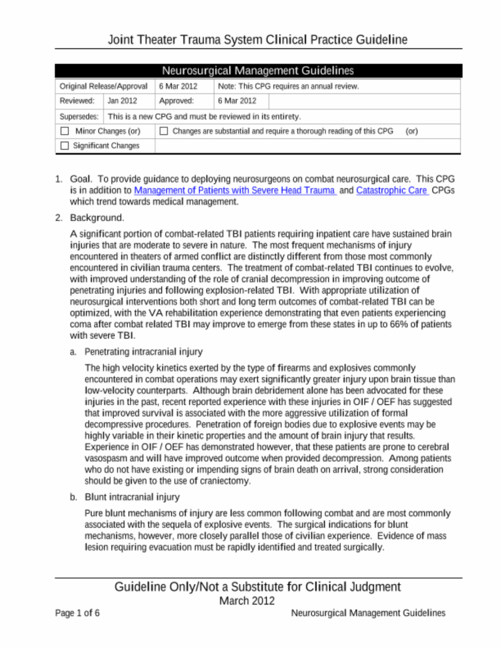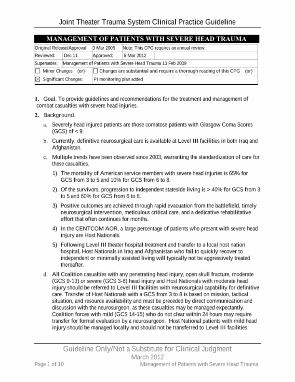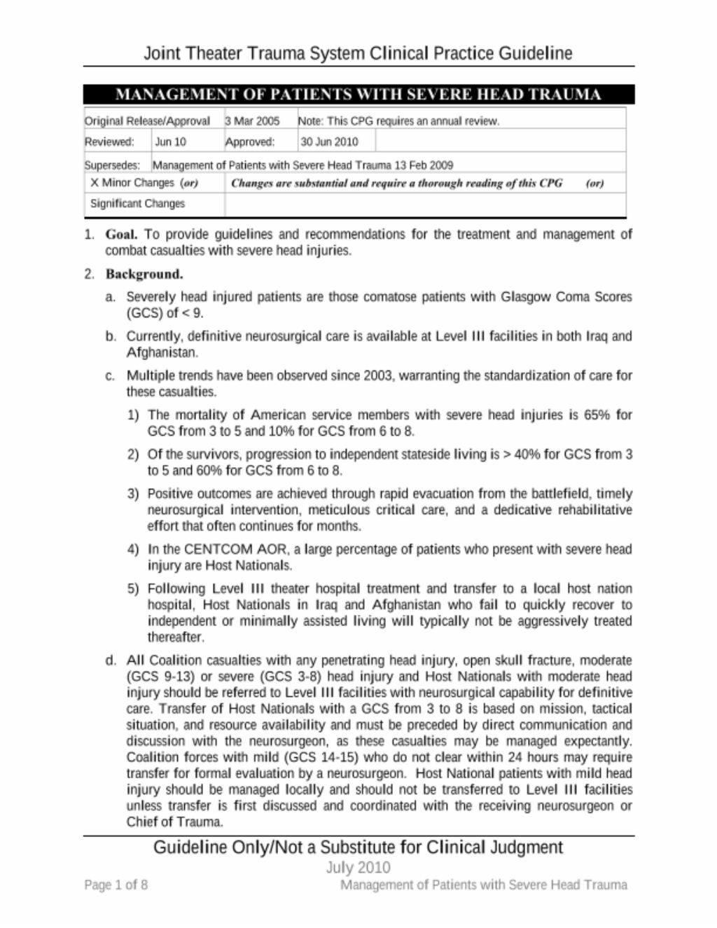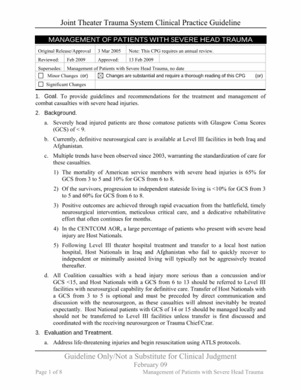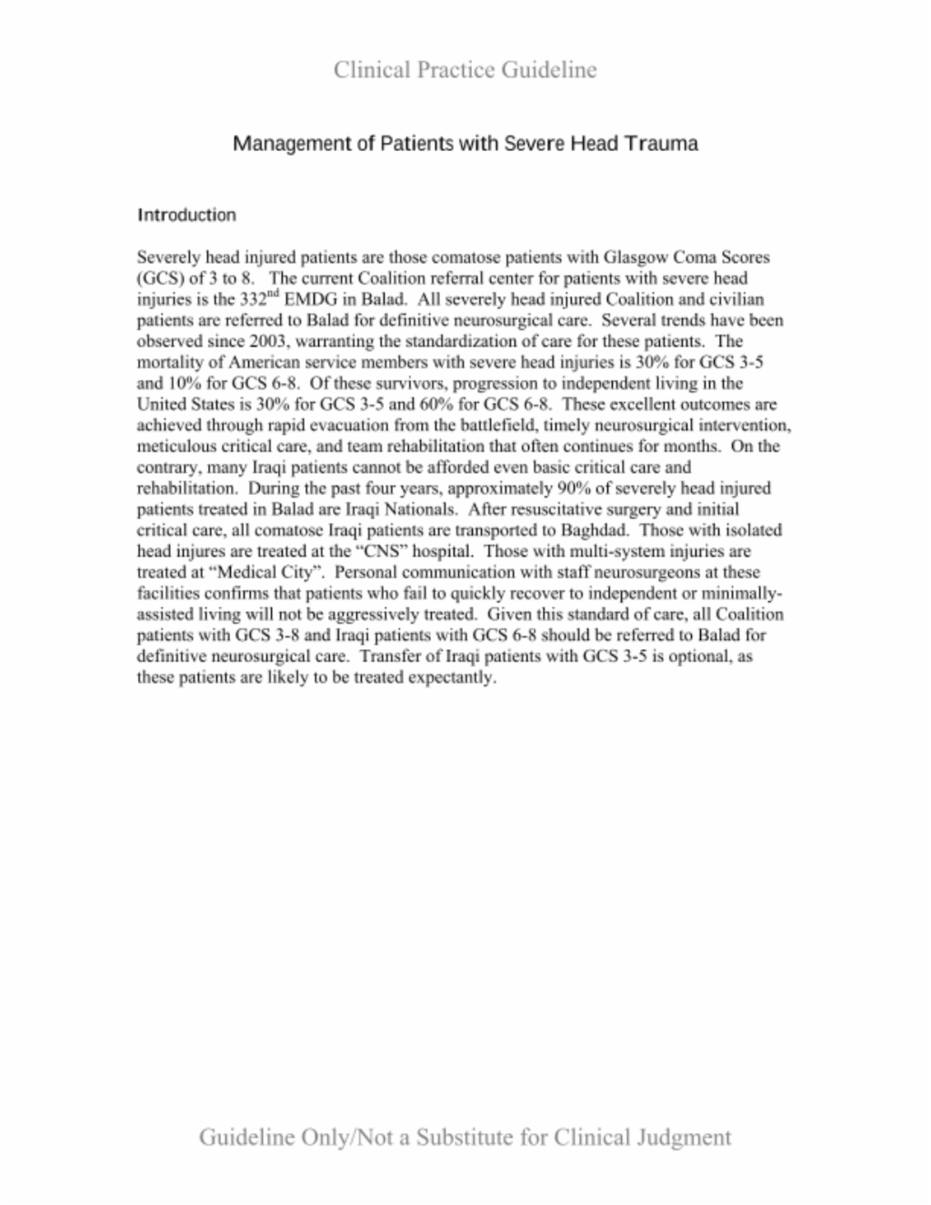 These guidelines are not intended to supplant physician judgment. Rather, these guidelines are intended to provide a basic framework for those less experienced with the delivery of care in this setting to the brain injured patient, as well as to educate and provide insight to others on the delivery of care in a restrictive environment.