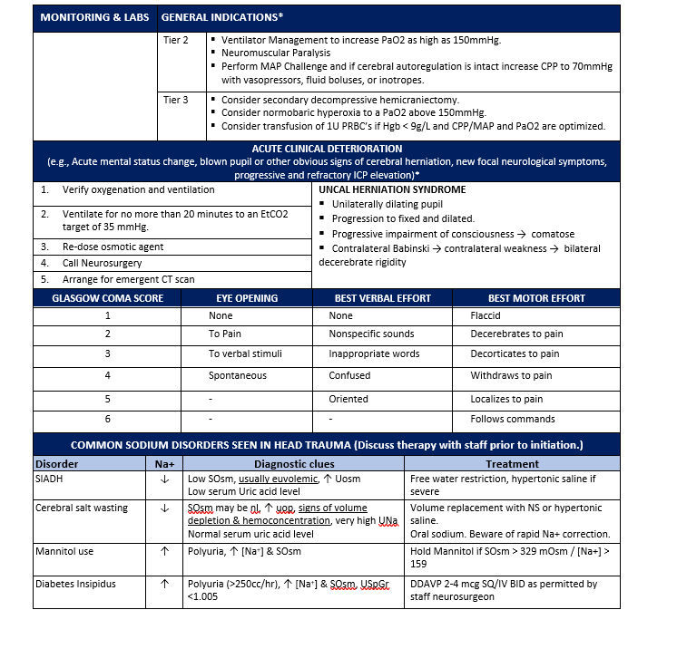 This guideline applies to all patients for whom there is an intracranial neurologic injury with risk of decompensation per primary team.