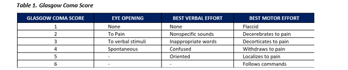 The classification of brain injury informs prognosis and care eligibility in the combat environment. Brain injury severity is classified according to their GCS.
